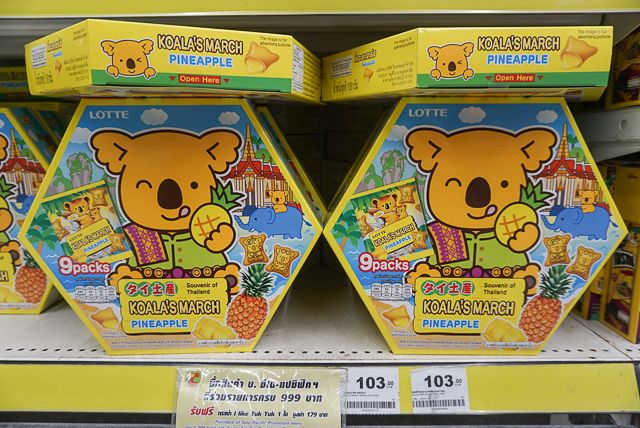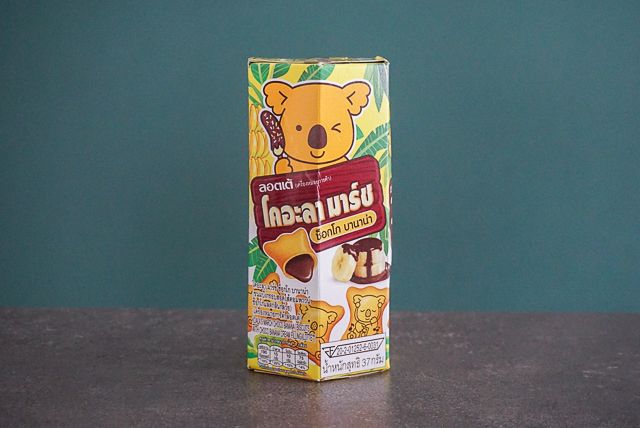 ロッテの「コアラのマーチ」もタイでよく見かけます。「チョコバナナ」味はとてもマイルドで、老若男女問わず受け入れられそう(22バーツ)。