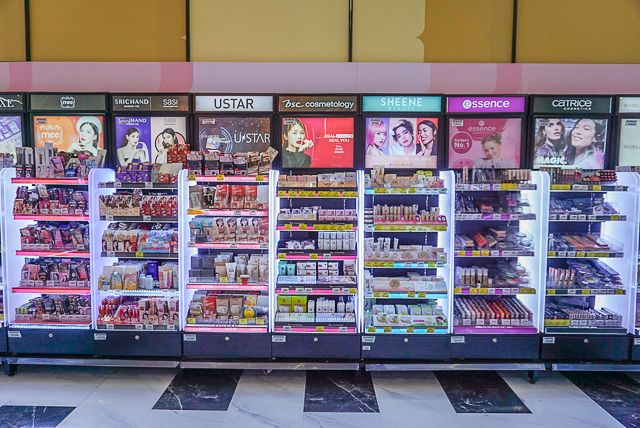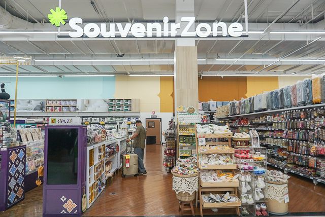 食品売り場の横には美容品のコーナーも。大きなカートを押した観光客でごった返しています。