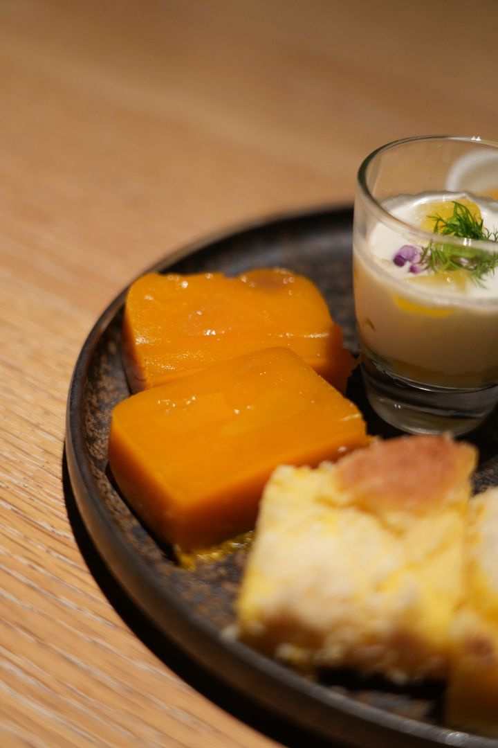 写真右のマンゴーのテリーヌは、舌触りが良く濃厚で甘さ控えめ。