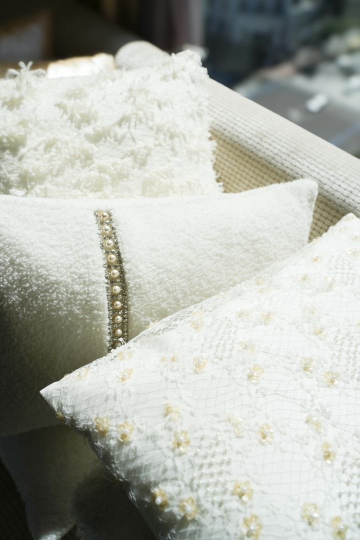様々なデザインのクッションにもキラキラ輝くパールが...✨