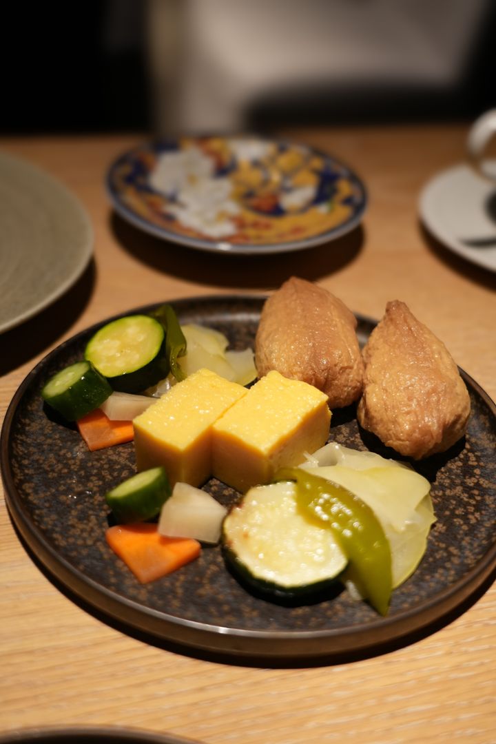 京風絹いなり寿司、季節野菜前菜、だし巻き玉子、漬物
