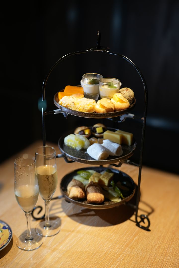 和洋様々なスイーツに加え、いなり寿司などご飯ものもセットになったハイティ。