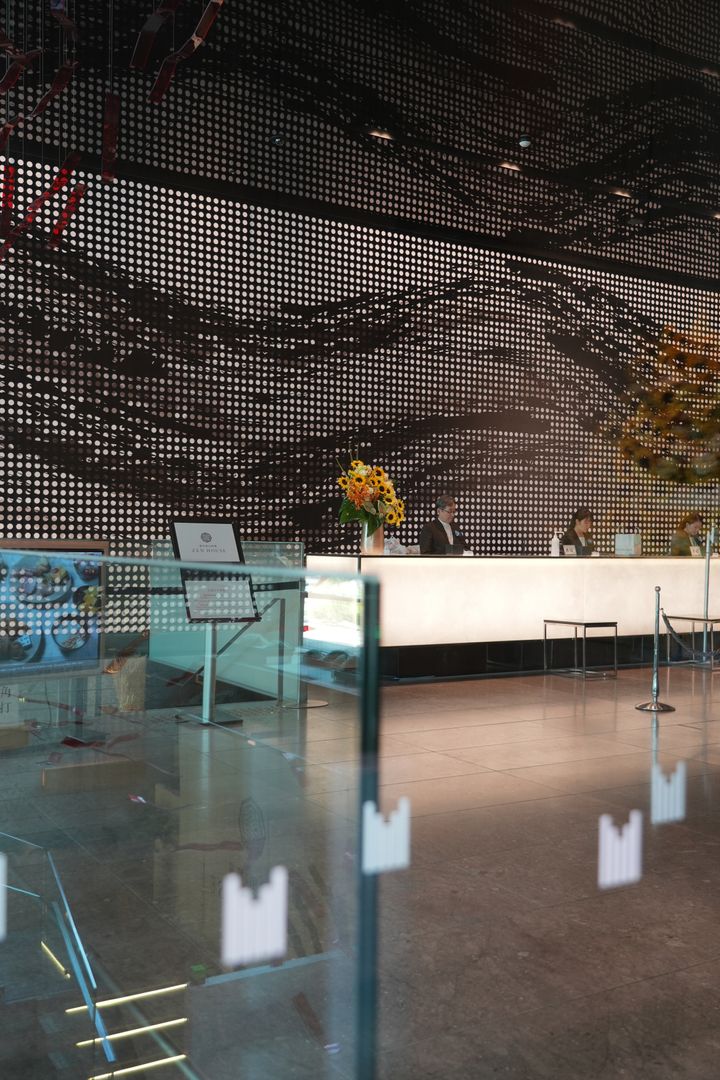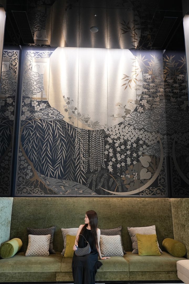 ロビーの目玉でもある、着物デザイナーの斉藤 上太郎さんが手がけたロビーアートは圧巻。