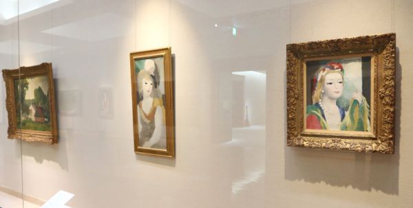 マリー・ローランサンのパステルカラーのどこか夢見るような淡い色の《帽子をかぶった少女》(中央)。 同じく《若い女》(右)は、はっきりとした意思を感じる眼差し。
