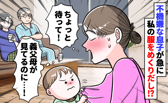 3. 「待って、イヤ…!」2歳の息子が急に私の服を上までめくりトンデモない行動を!?義父母が見てるのに