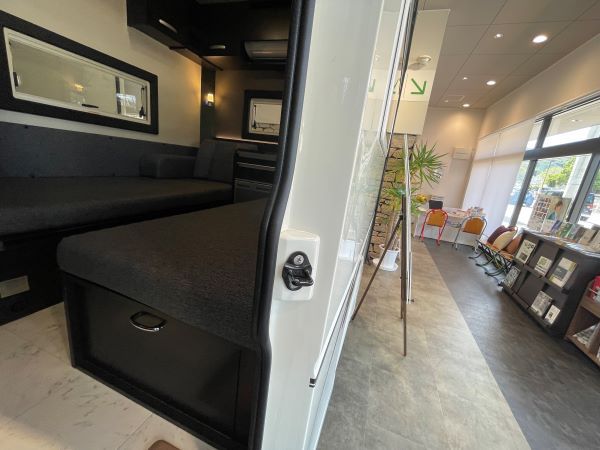 今回、実際にキャンピングカーを見せて頂き、「ワンルームマンション」、「ビジネスホテル」の内装は理解できました。