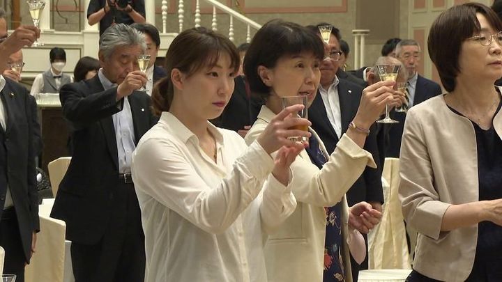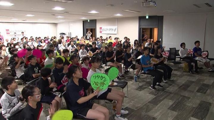 パリオリンピック前の壮行会に参加する東野選手と母・洋美さん