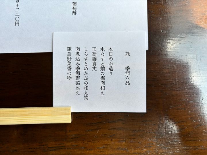 籠盛り膳の季節の6品は、写真のラインナップ。