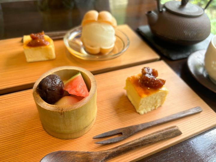 チョイスしたドリンク(加賀棒茶)と、デザートが到着。