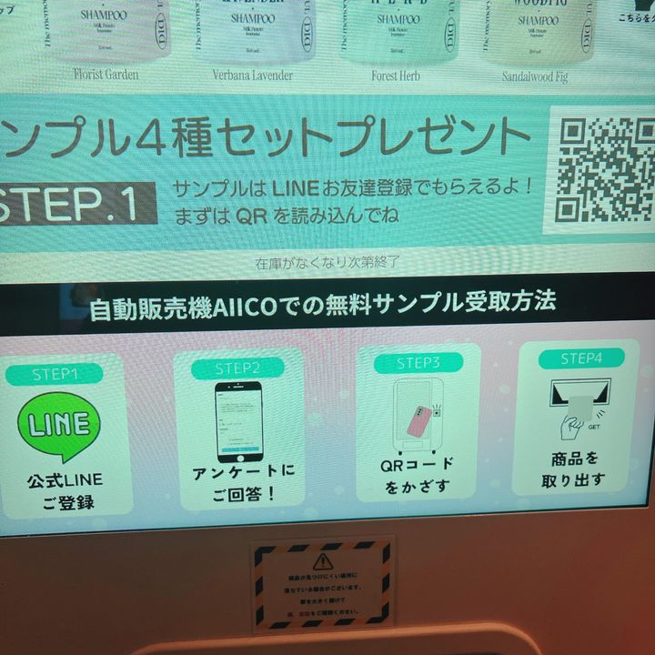 手順はLINE登録して、簡単なアンケートに答え、スマホに出てきたQRコードをかざすともらえます。