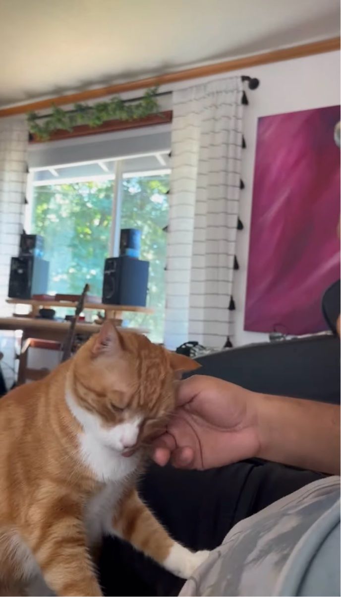 3. ネコが特技のハイタッチを披露!ご褒美にナデナデしてもらえて嬉しそう~!【アメリカ・動画】