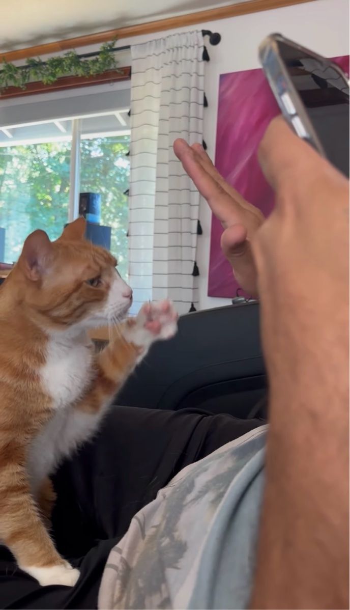 ネコが特技のハイタッチを披露!ご褒美にナデナデしてもらえて嬉しそう~!【アメリカ・動画】