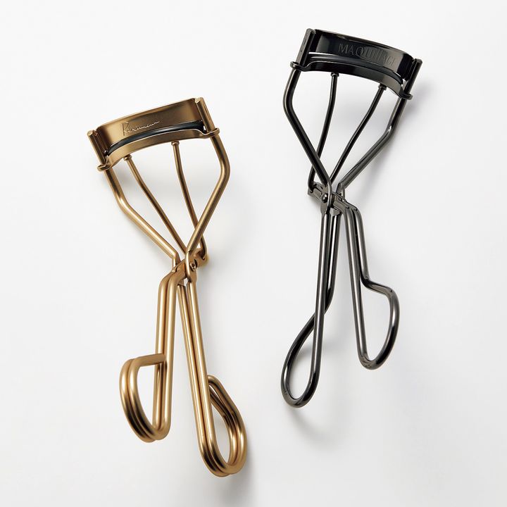 国産ビューラーが日本人の目元にフィット。左:圧巻のカールアップ力!リリミュウ アイラッシュカーラー ¥1,980(コージー本舗)右:ゴムが硬めでまつ毛を根元からキャッチ。エッジフリー アイラッシュカーラー ¥1,100<編集部調べ>(マキアージュ)