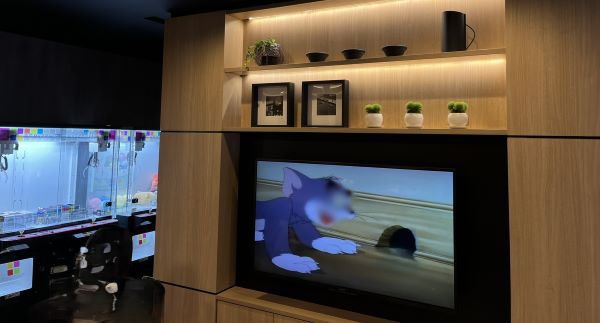 長時間の船内に、子供も飽きてこないか気になりますよね。そんな時には是非売店の横へ。アニメが流れていましたよ!乗船後半は、息子たちもここで他のお子さんたちと一緒にアニメを楽しんでいました。また驚いたことに、クレーンゲームやスロットもあるんですよ。大人も子供も、楽しい時間を過ごされている様子でした。