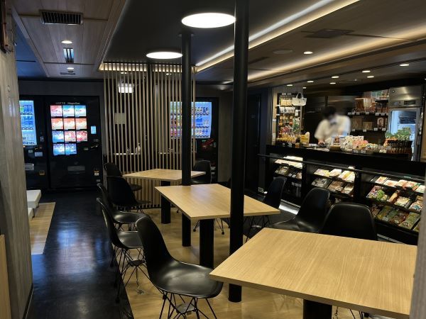 売店は、愛媛と大分のお土産が充実しています。柑橘ジュースの種類の多さは、愛媛ならでは。アイスやカップラーメンの自動販売機もありました。売店の前にも席がありますので、ここでもくつろぐことができます。