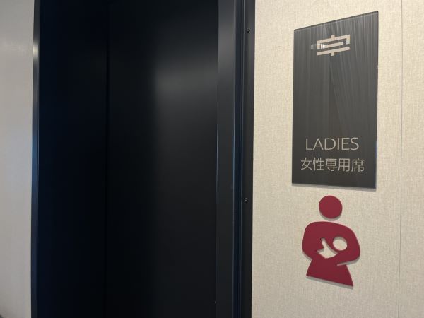 2階の「女性専用席」は、ピクトグラムで表現されているようにベビールーム。オムツ台と授乳ができるようなソファ、湯沸かしポットがありました。また、2畳ほどのじゅうたんのスペースも。息子たちが小さい時は、このちょっとしたスペースにも助けられたことを思い出しました。