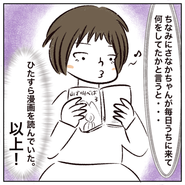 ちなみに、さなかちゃんが毎日まるさんの家に遊びに来てしていたことは・・ひたすらマンガを読むということでした。
