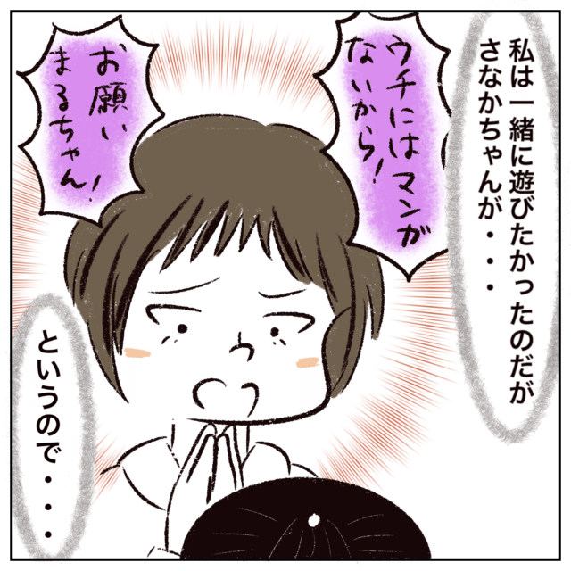 まるさんは一緒に遊びたかったおですが、「うちにはマンガがないから!お願いまるちゃん!」とさなかちゃんに言われて仕方なくOKしていました。