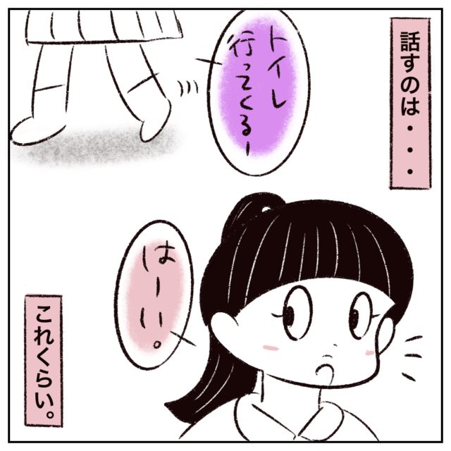 そして話すことと言えば・・「トイレ行ってくるー」「はーい」とこれくらい。
