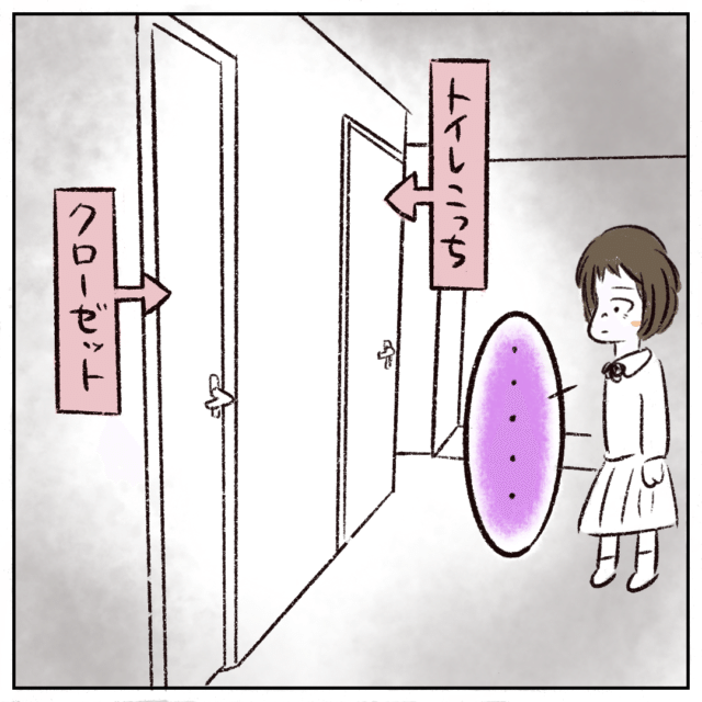そしてある日のこと、いつものように「トイレ行ってくるー」と立ち上がったさなかちゃん、部屋を出てトイレに向かうと、トイレのドアの左側にはクローゼットのドアがありました。
