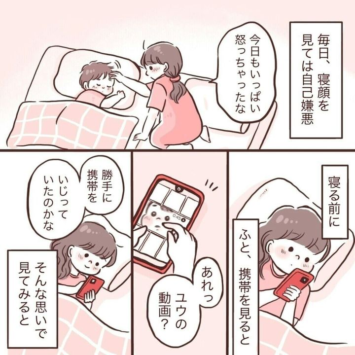 やんちゃな5歳の息子「ユウくん」に手を焼くママ。寝る前にスマホを見ていると、ユウがママのスマホで知らぬ間に撮影した自撮り動画が入っていて…。いったいどのような内容なのでしょうか。※この漫画は、ママリに投稿された子育てエピソードをもとに、許諾を得て漫画化したものです。