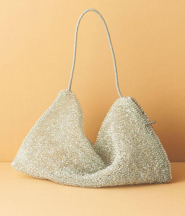ワイヤーバッグというと可愛いイメージがありますが、これはクールなところが新鮮。テイラードジャケット×ワンピのハズシに使いたいです。