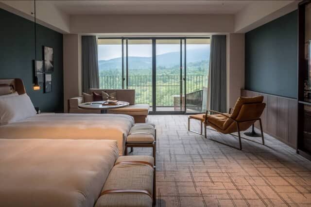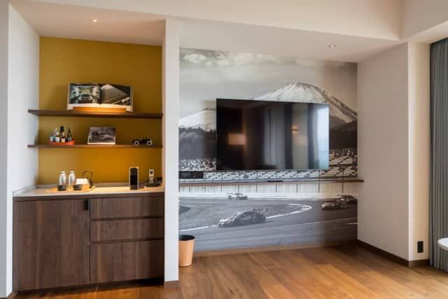 客室はサーキットビューと富士山ビューがあり、それぞれスタンダード、デラックス、コーナールームにくわえ、21室のスイートを用意していて、全室バルコニー付き。さらにガレージを備えた別棟のヴィラも5室備えます。全ての客室はターンダウンのサービスがあります。