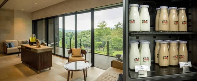 温泉の後はやっぱり瓶牛乳ですね。富士山の西山麓にある朝霧高原で採れた「あさぎり牛乳」が冷えています。