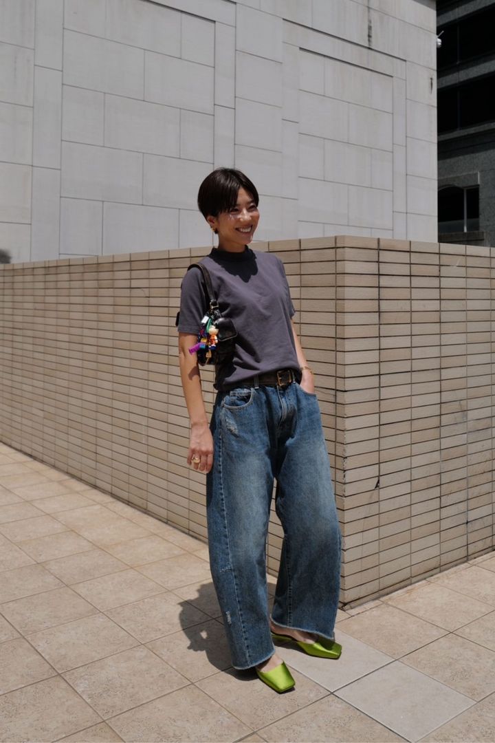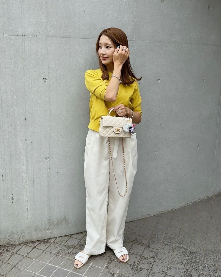 「チャームじゃら付けはシャネル以外にもいろいろ試していて、バッグの色に合わせて選びます。キレイめ服が好きなのですが、チャームはほどよくカジュアルダウンしてくれるのでこの夏大活躍。すべてSHEINで買いました。ごちゃついて見えないように、紫をポイントにしてほかはベーシックカラーでまとめました」船岡真実さん・37歳(主婦/4歳と3カ月の女の子ママ)