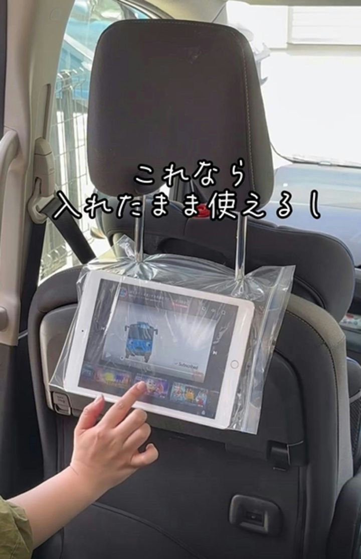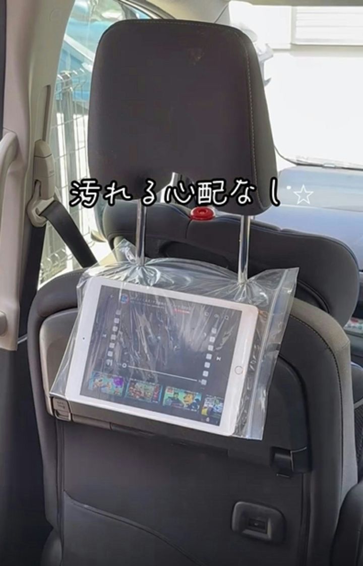スマートフォンだけでなく、タブレットホルダーにもなる保存袋。ぜひお試しください。