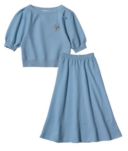 単品でもセットでも使い勝手抜群!華やぎブルーの「ブローチ付きニットアップ」