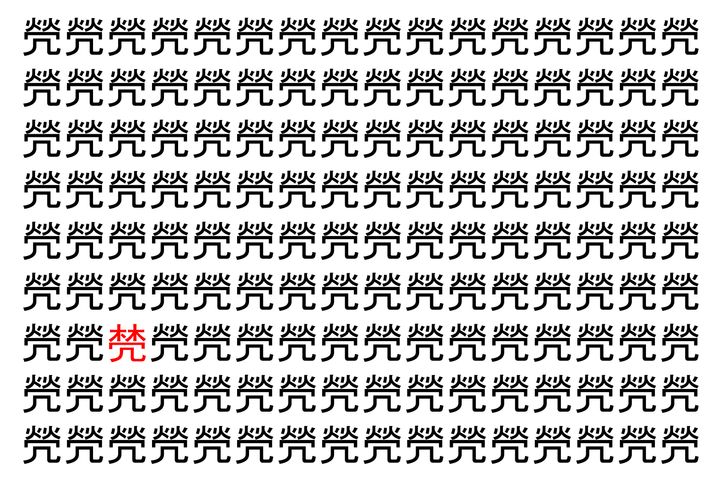 2. 【脳トレ】「焭」の中に紛れて1つ違う文字がある!?あなたは何秒で探し出せるかな??【違う文字を探せ!】