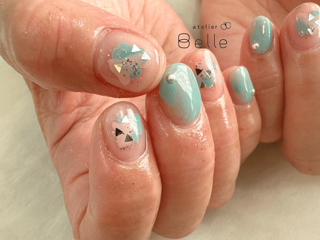 パステルカラーは通年人気のカラーですが、ブルー系のグラデーションを施したデザインや、ピンクカラー1色などではなく、今回は敢えて統一せずに違った印象のパステルカラーを選びました。