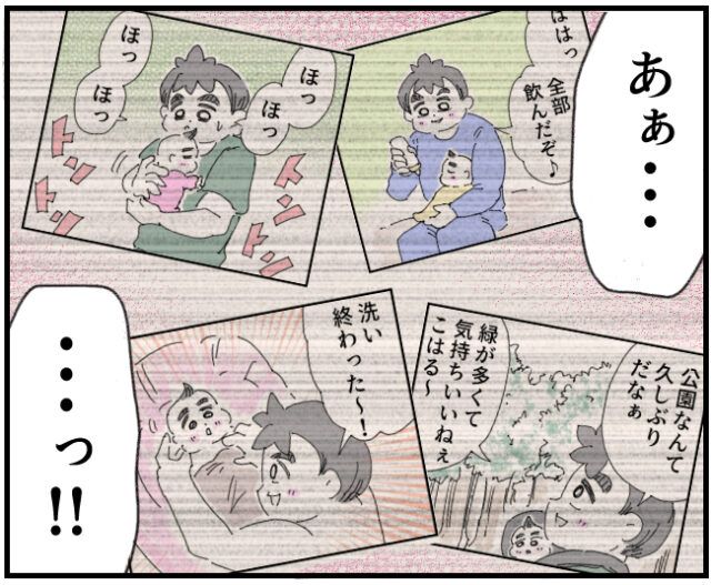 いちろうさんの頭には、慣れない育児に奮闘しながらこはるちゃんとの絆を深めていった幸せな日々の記憶がよみがえります。
