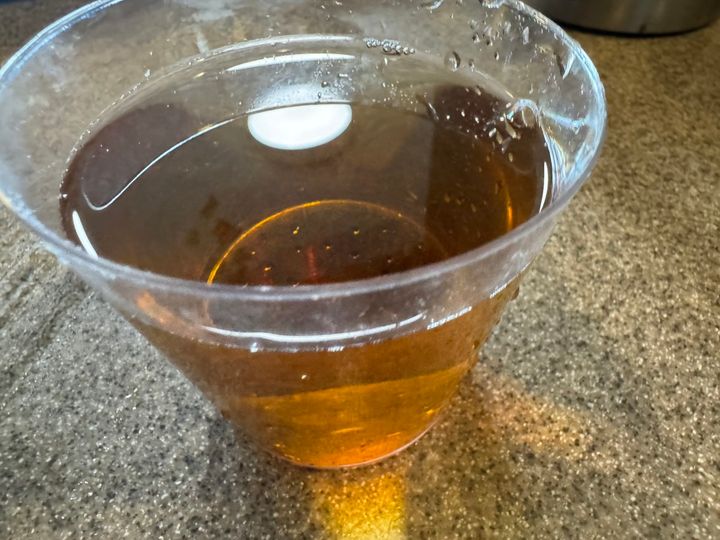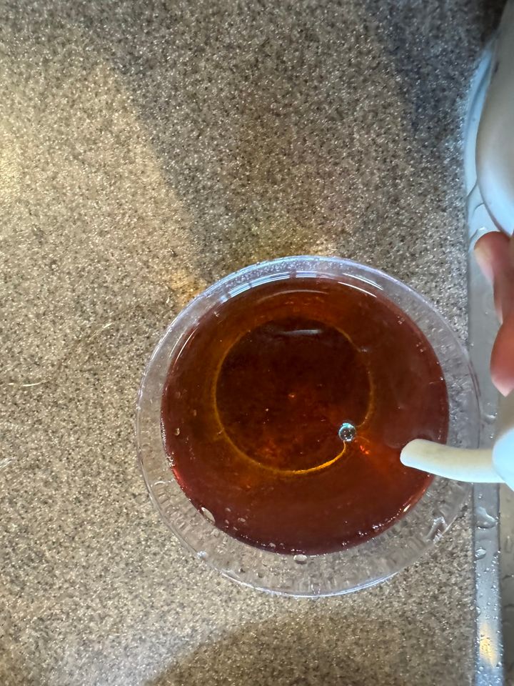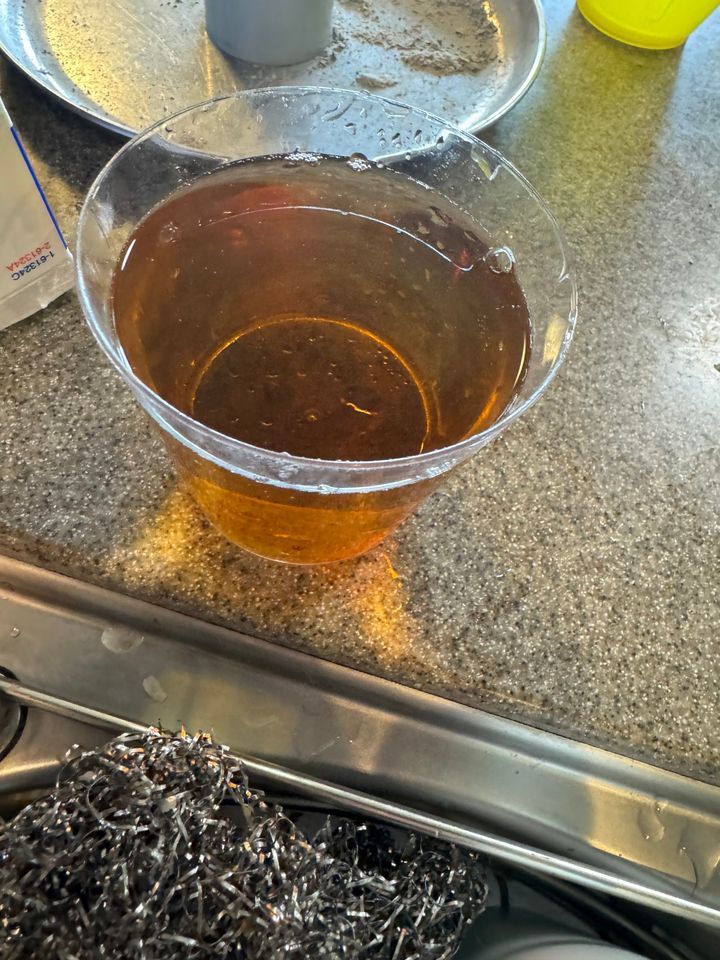 作り方は簡単。麺つゆを水で薄めて、容器の7〜8分目まで入れます。適当な色にしたら台所洗剤を1〜2プッシュ入れるだけ。要は洗剤がコバエを捕まえて離さなくなるんですね〜と勝手に予想してます。