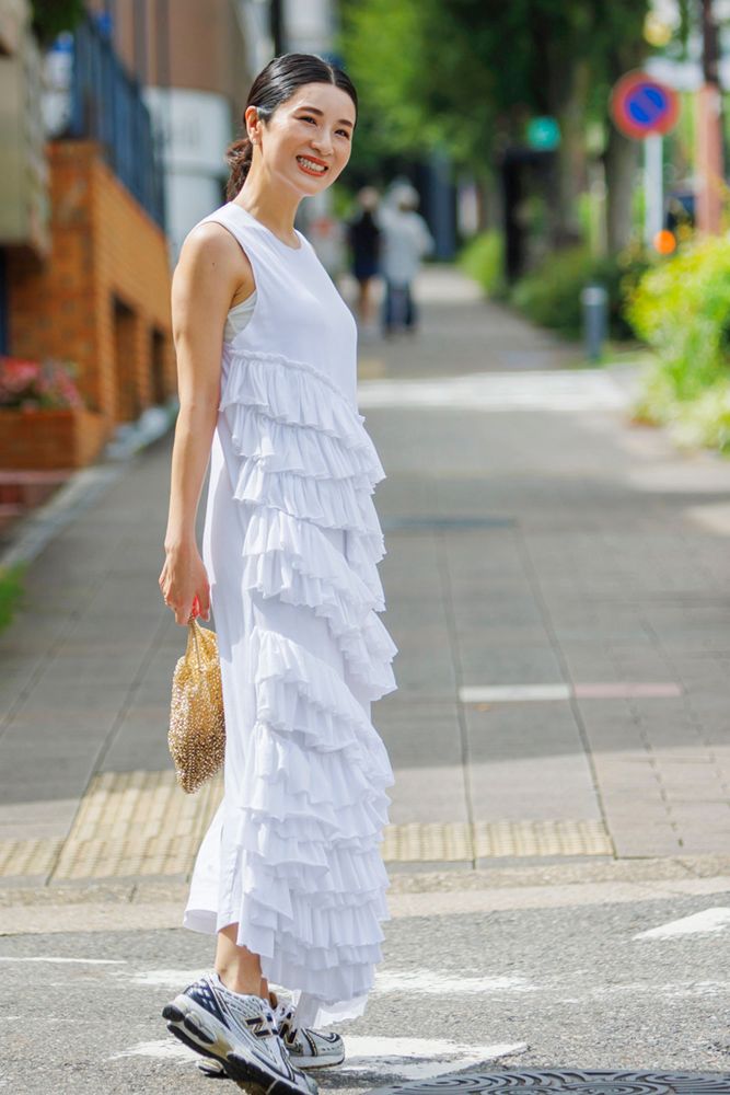 ドラマティックなワンピをカジュアルダウンさせてくれるバランサー