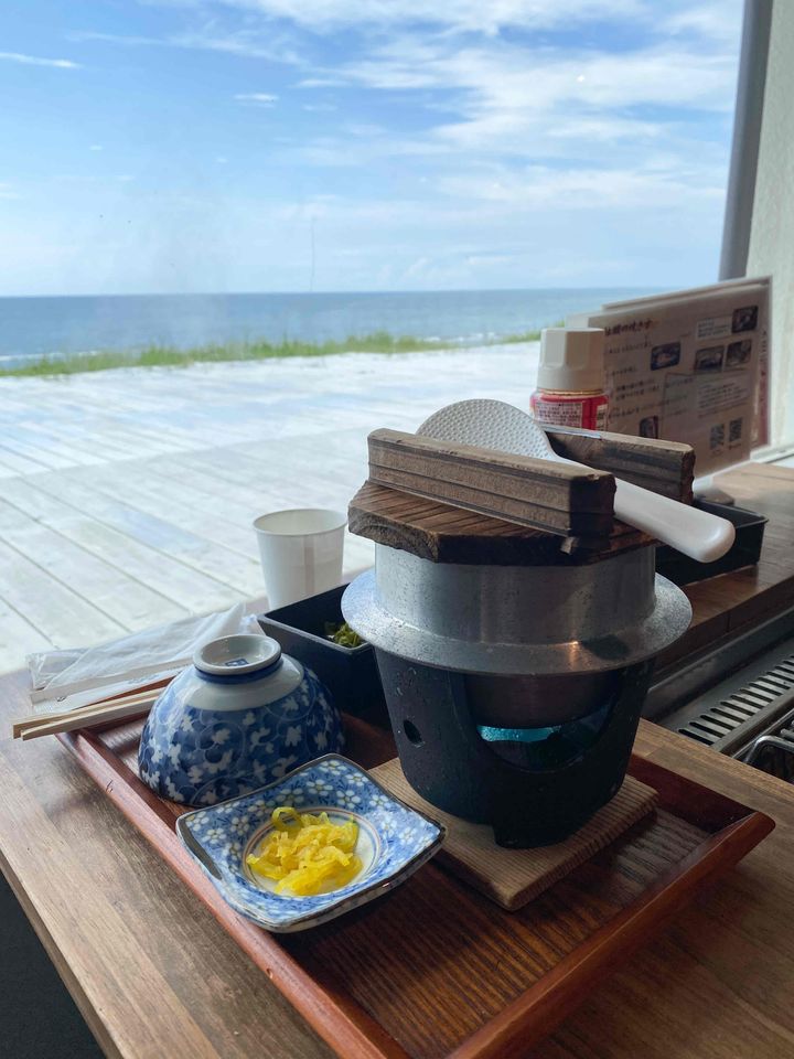 石川県羽咋(はくい)市へのドライブで立ち寄った『能登千里浜レストハウス』日本海をすぐそばに感じる絶好のロケーションは、県内外の人々にとってインパクト抜群!海鮮レストラン『浜焼き能登風土 千里浜店』では、かきフライ定食と牡蠣釜飯をいただきました。