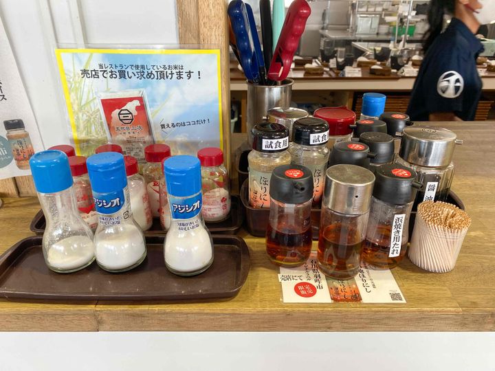 アジシオや浜焼き用たれに加えて、「アウトドアスパイスほりにし」が設置されていました。バーベキューのようでちょっとテンションが上がります。