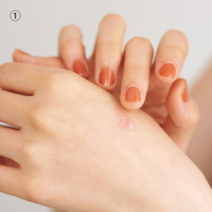 美ST世代に不可欠な血色感。ただ、色が出すぎると逆効果に。チップで直塗りせず一度手元に出すのが少量を薄く伸ばすコツ。