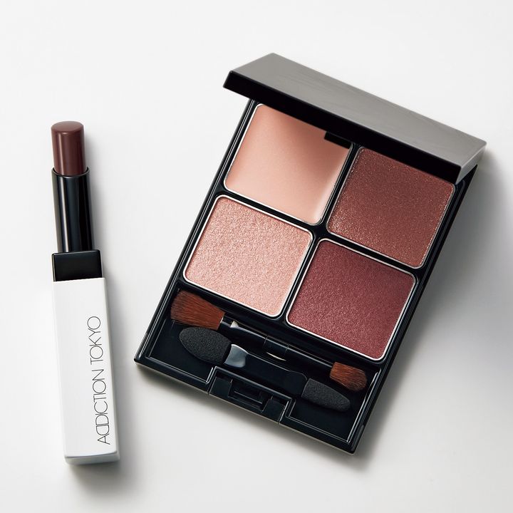 右:左下1色を上下まぶたに。B.A 3D オアシス アイカラー 02 ¥7,700 ※8月1日発売(ポーラ)左:唇が主役になる色。アディクション ザ リップバーム グロウティント Night Calling ¥4,070(ADDICTION BEAUTY)