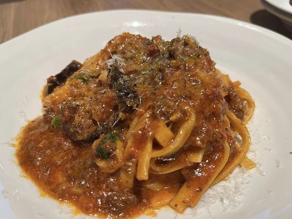平打ちの麺なので食べ応えもよく、赤ワインとトマトでじっくり煮込まれた牛肉とバルミジャーノチーズが濃厚でおいしい!