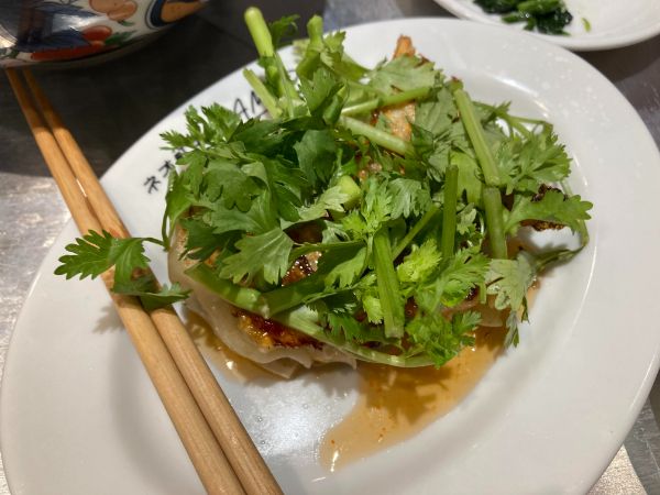 自慢の餃子をエスニック仕立てにアレンジした、チリパクチー餃子。 たっぷり野菜に濃厚な味付けが凝縮され、勿論そのままでも美味しい自慢の餃子、たっぷりのパクチーがインパクト大!