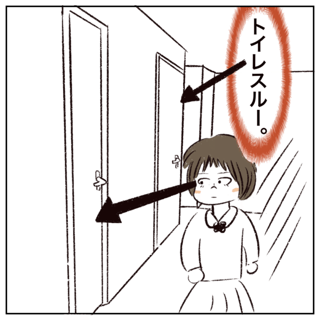 まるさんが小学2年生のときの同級生さなかちゃんは毎日のようにまるさんの家に遊びに来ていました。まるさんのお母さんと対面した翌日から突然来なくなり他のお友達の家を回っていたさなかちゃんですが、他の家で出禁になったようでまるさんのところへ戻ってきました。しかし、さなかちゃんはまるさんの家に来ても一緒に遊ぶわけではなく、おやつを食べてひたすら漫画を読んでいたのです。あるとき、トイレに立ったさなかちゃんは、トイレの隣のクローゼットの前でドアをじっと見つめて立ち止まりました。