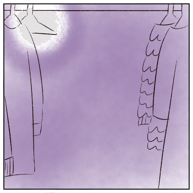 さなかちゃんが帰った後、クローゼットには何も服がかかっていないハンガーがひとつありました。さっきまではまるさんの服がかかっていたような気がしますが、どこへいってしまったのでしょうか。