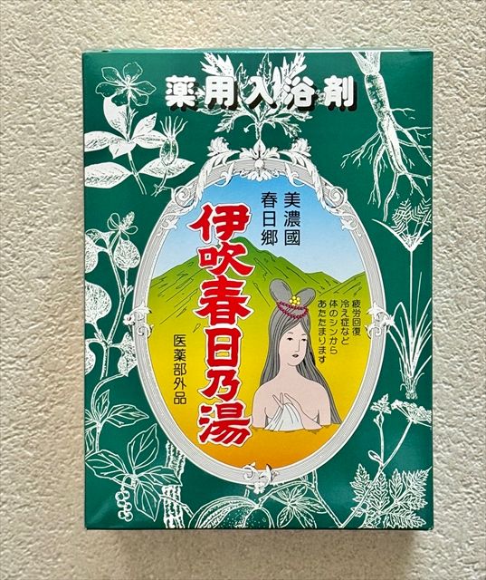 筆者が訪れたときは薬草不足で品切れ中だった、人気の入浴剤「伊吹春日乃湯」。写真は後日通販で入手したもの