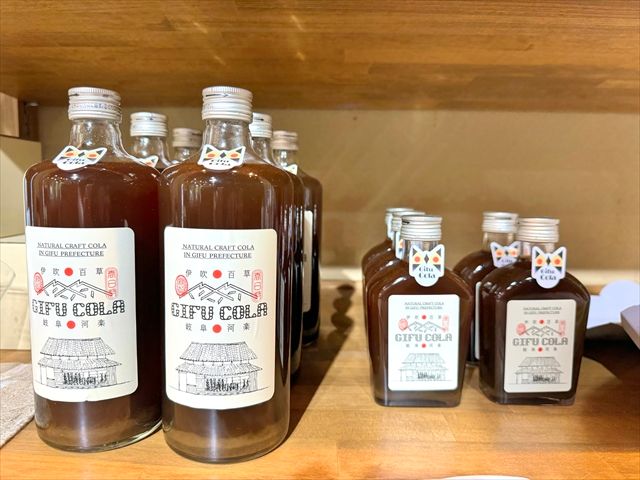 クラフトコーラ「ぎふコーラ」にも、ヨモギ、ヤブニッケイ、カキドオシ、ドクダミと4種類の薬草が使われている。200ml 2,400円(税込)