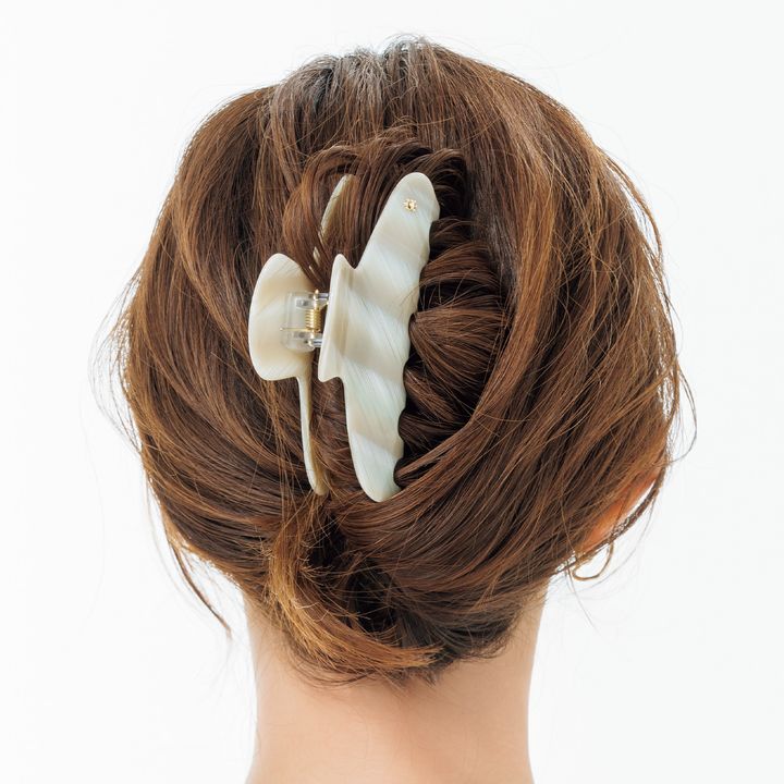 髪が多い人は、大きめで歯が長いクリップがおすすめ。ぐさっと毛束に刺さり、しっかり留まります。今回、大谷さんは1を使用。