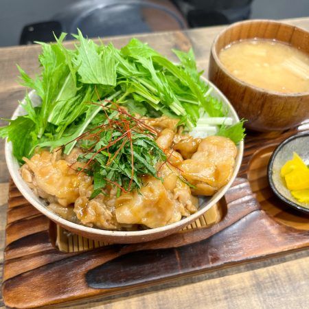 甘辛いタレがたっぷりからんだ豚肉と、シャキシャキの水菜がのった豚丼は、新しいのに、どこか懐かしいおふくろの味。 カウンダー越しの会話もプラスされ、温かい気持ちになれるお店でした。