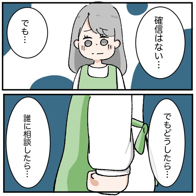「確信はない・・でも・・でも、どうしたら・・誰に相談したら・・」このなんとも言えないモヤモヤを誰に相談したらいいのか、ママは考え込んでしまいました。
