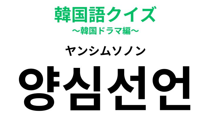 「양심선언(ヤンシムソノン)」は、「양심(ヤンシム)」=「良心」と「선언(ソノン)」=「宣言」をあわせた言葉です。